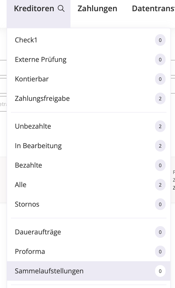 In der Ansicht „Sammelaufstellungen“ sehen Sie Rechnungsbelege, die mehrere einzelne Positionen oder Lieferungen zu einem gemeinsamen Dokument zusammenfassen.