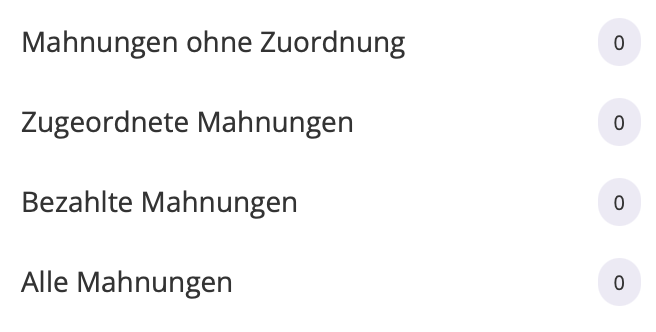 Der Reiter „Bezahlte Mahnungen“ enthält Mahnungen zu Rechnungen, die bereits vollständig beglichen wurden – entweder vor oder nach Erhalt der Mahnung.