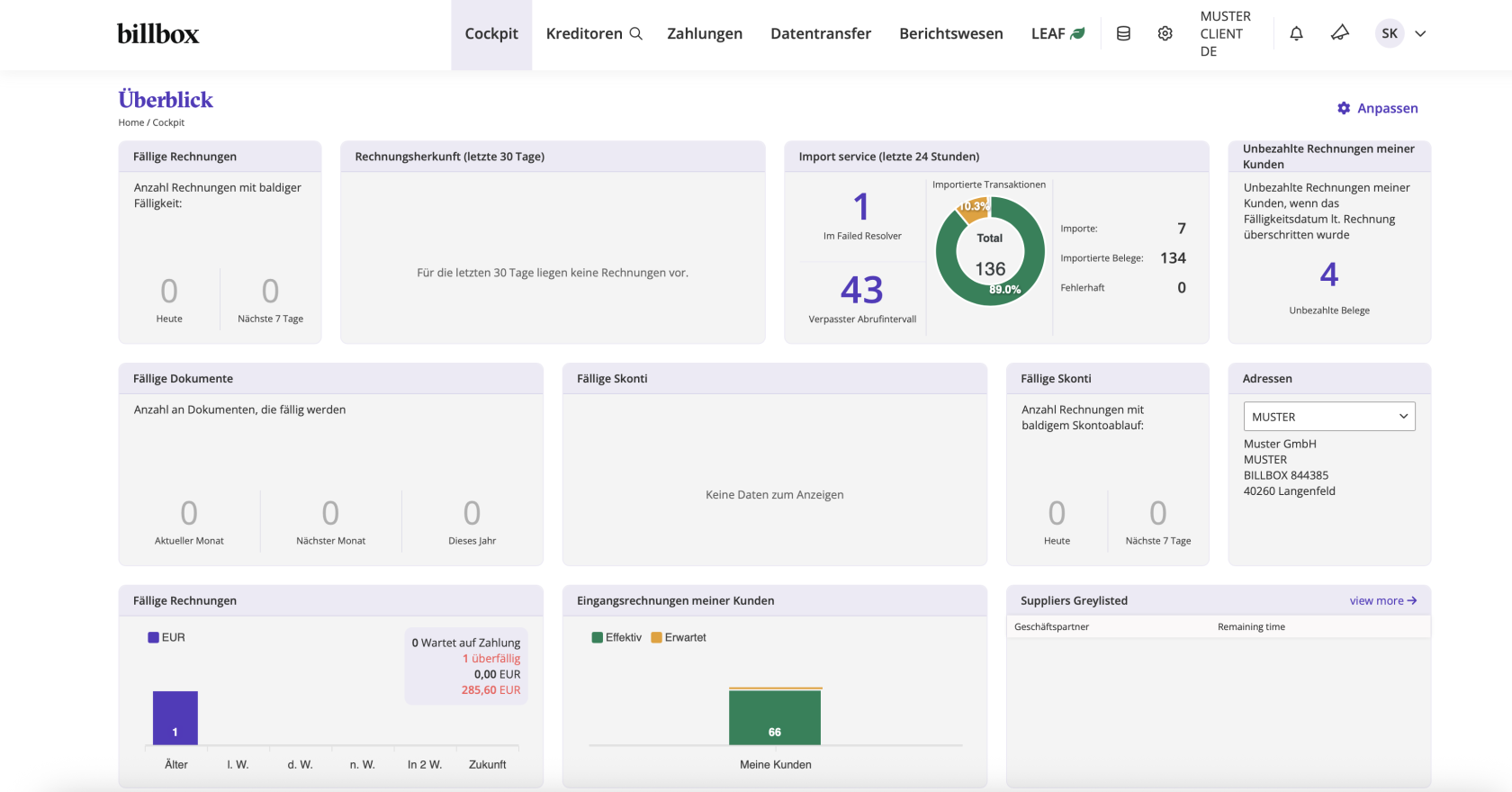 - Cockpit: Ihr persönliches Dashboard mit den wichtigsten KPIs, To-Dos und Übersichten.