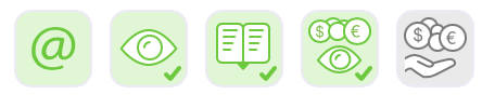 In billbox durchlaufen Belege einen klar strukturierten Vier-Schritte-Workflow, der Ihnen hilft, Ihre Rechnungsverarbeitung effizient und transparent zu gestalten. Jeder Schritt ist durch ein Symbol gekennzeichnet und zeigt den jeweiligen Bearbeitungsstatus an – von der ersten Sichtung bis zur finalen Zahlung.